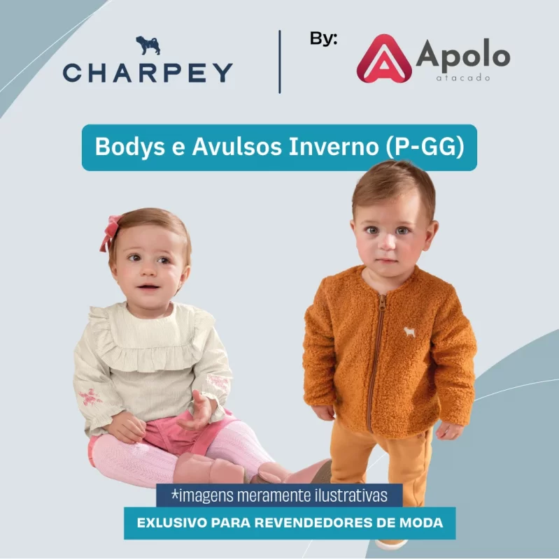 Kit avulsos com modelos lindos saindo a R$ 39,90 cada peça, um charme! Grade: P-GG - Distribuído em 69% modelos no masculino e 31% feminino, sendo: 44% Superiores 35% Body e macacão e 21% inferiores. Mix de peças com calças, casacos, bodies, jaquetas, camisas e blusões. Kit vendido com 16 peças saindo a R$ 638,40.