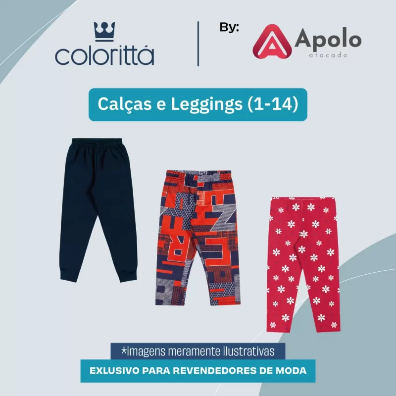 Novidade quentinha para criar looks super modernos! Calças Colorittá saindo a R$ 32,90 cada peça. Grade: 1 - 14, distribuído em: 37% 1 ao 3 | 53% 4 ao 10 | 10% 12 ao 14. Vendido em kits de 30 peças por apenas R$ 987,00.