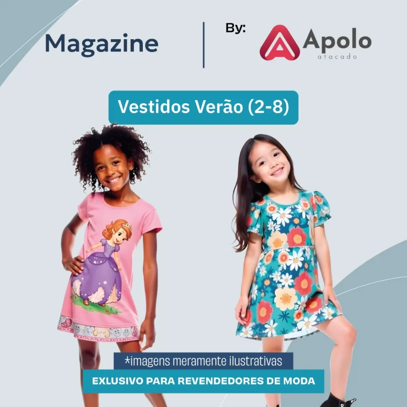 Mais uma opção imperdível de preço baixo e oportunidade para sua loja de moda infantil. Vestidos magazine saindo a R$ 12,90 cada peça. Grade: 2 - 8, com modelinhos super fofos! Minnie, Mickey, Margarida, Hello Kitty, Minions, Lilo Stitch, Mulher maravilha e Barbie, entre outros. Vendido em kits com 24 peças no valor de R$ 309,60.
