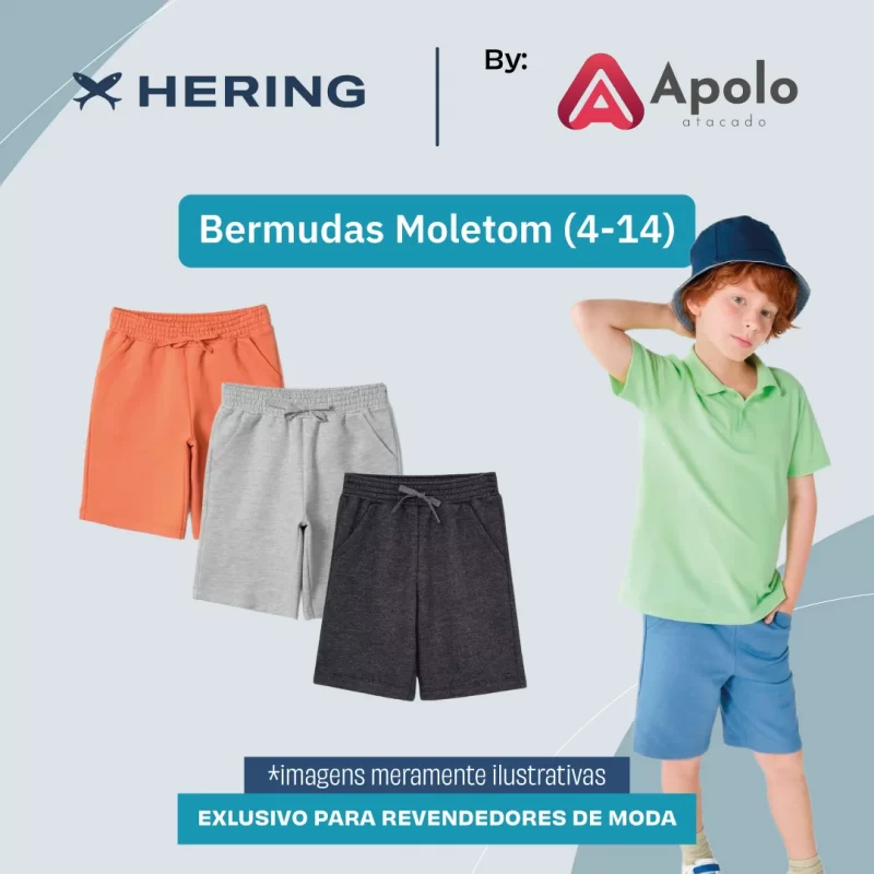 Quer um kit muito versátil para o verão? Kit de Bermudas em moletinho é pedida certa com peças saindo a R$ 19,90 cada. Grade: 4-14 nas cores: Preto, mescla e azul marinho, perfeitas para uso na escola, passeios e na composição de um looks . Kit vendido com 24 peças saindo a R$ 477,60.