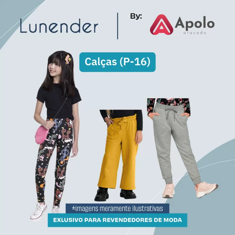 Novidade em mix de calças para sua loja. Calças em vários modelos do bebê ao Juvenil, saindo a R$ 135,00 o quilo! Grade: P-18, conta com moletom, legging, jeans, jogger, malha, molecotton e modelos em sarja. Kit vendido com 10 quilos saindo a R$ 1.350,00.