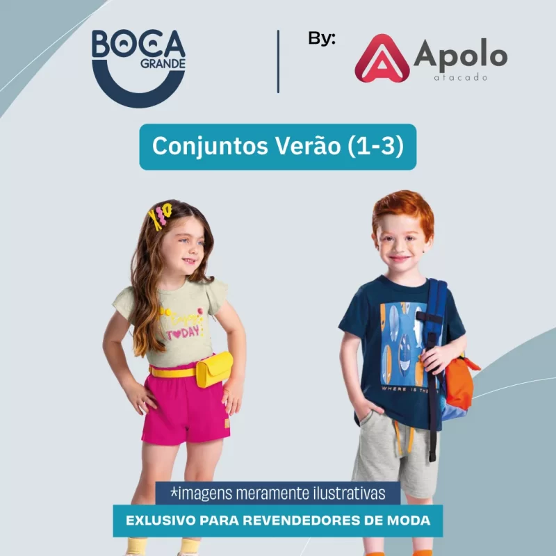 Novidade Fresquinha Boca Grande e Glinny! Modelos super fofos saindo a R$ 39,90 cada peça. Grade: 1 ao 3 - distribuído em 50% feminino e 50% masculino Kit vendido com 30 peças saindo a R$ 1.197,00.