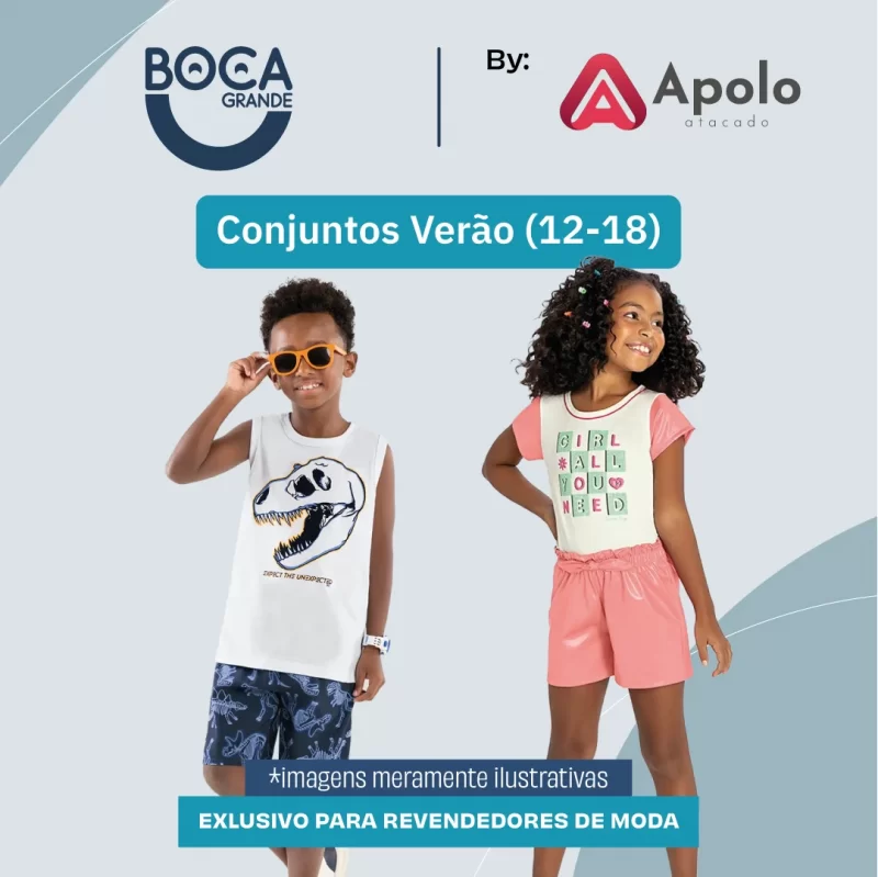 Novidade Fashionista para nossos Adolescentes! Kit Boca Grande e Soda saindo a R$ 59,90 cada peça. Grade: 12 ao 18 - contendo 50% de modelos femininos e 50% de modelos masculinos. Kit vendido com 30 peças saindo a R$ 1.797,00.